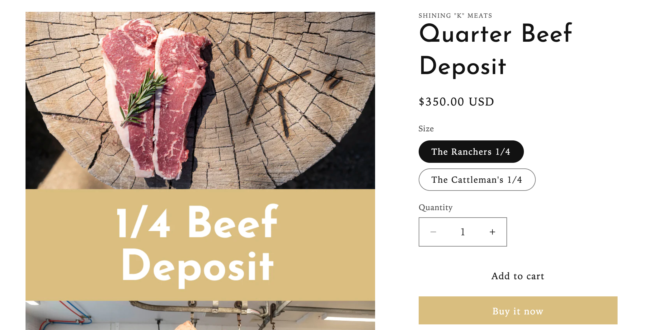 You can make an online deposit for our premium ranch-raised beef or pork. We offer beef in either a whole, half, or quarter share.